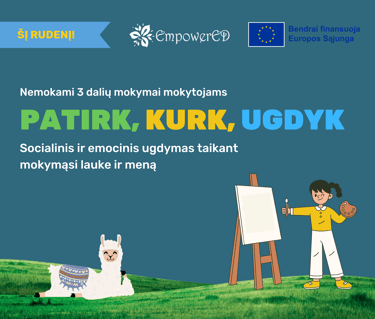 Miško briedžio mokykla kartu su partneriais iš Vilniaus universiteto, L2 Consulting AB (Švedija), Uppsala Kommun (Švedija) ir Sakarya universiteto (Turkija) kviečia gyvenimo įgūdžių, biologijos, dailės ir kitų dalykų mokytojus dalyvauti 3-jų dalių mokymuose, skirtuose mokinių socialinio ir emocinio ugdymo stiprinimui, pasitelkiant lauko pedagogiką ir mokymąsi per meną kaip mokiniui artimus ir šiuolaikiškus ugdymo metodus. Mokymų tikslas – tobulinti mokytojų kompetencijas ugdyti vaikų socialinius emocinius įgūdžius taikant mokymąsi lauke ir meną. Mokymai skirti gyvenimo įgūdžių, biologijos, dailės bei kitų dalykų mokytojams ir neformalaus ugdymo mokytojams.