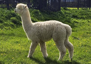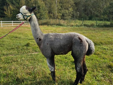 Vienintelė lama mūsų bandoje. Pravardė "Pavaduotojas". Puiki mažų alpakiukų auklytė.